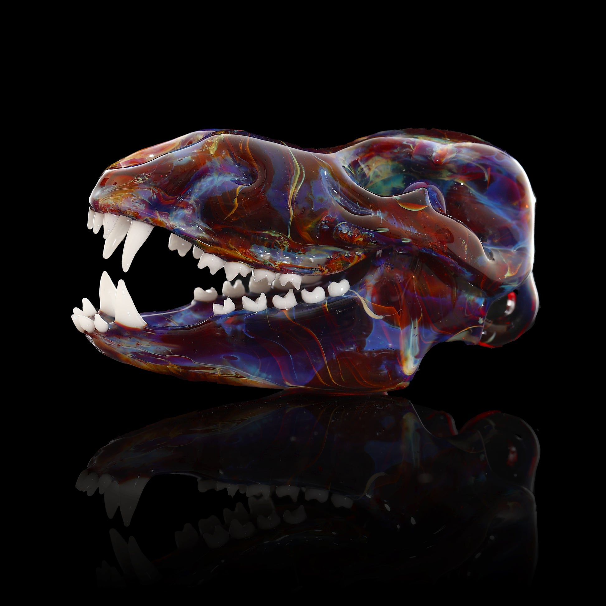 Roe Bear Skull Pendant #1/1 Amber Purple