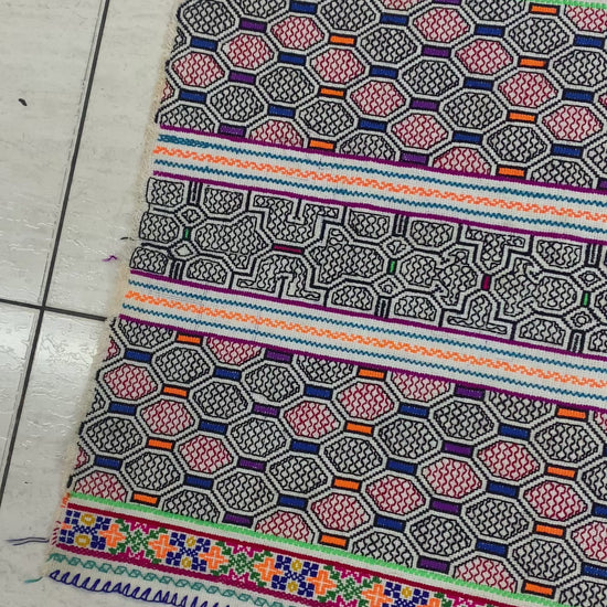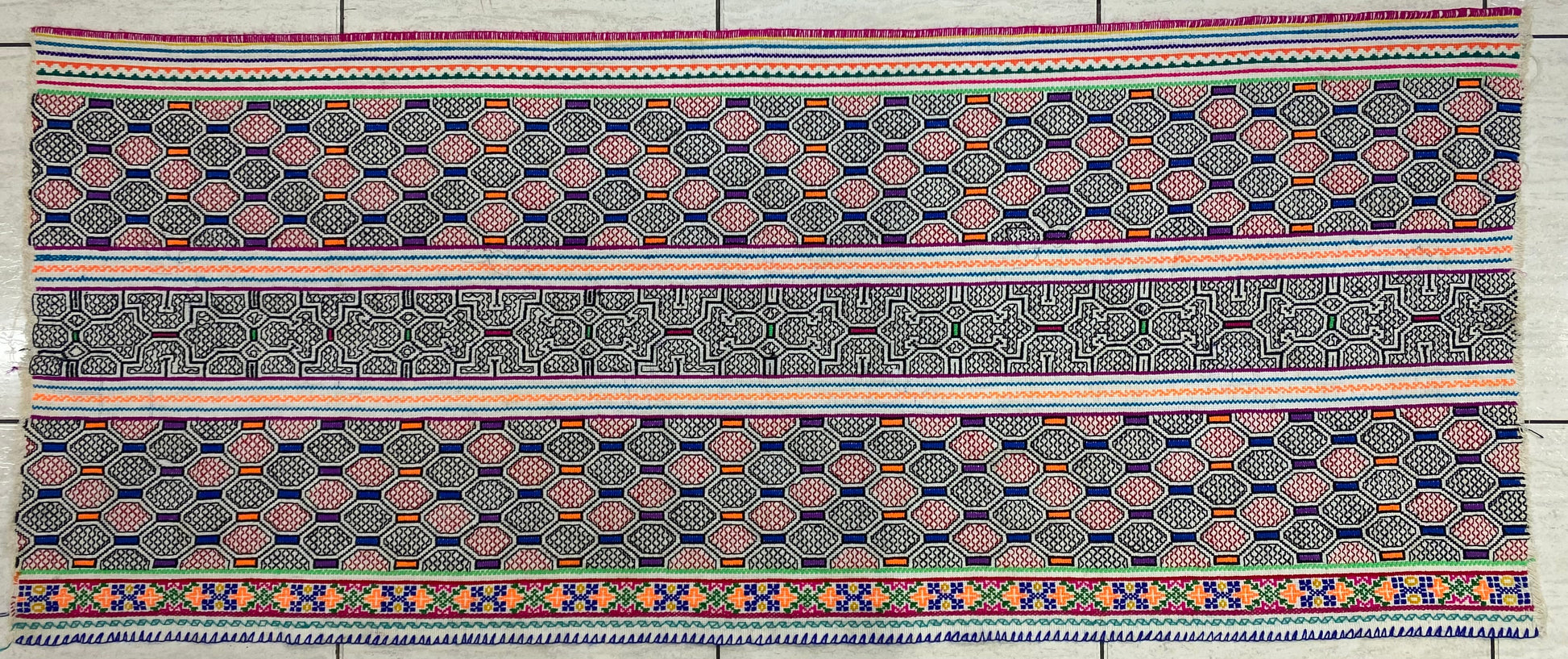 Shipibo Conibo Kené Tabletop Tapestry Hand Embroidered Peruvian Tablecloth Textile Ceremonial Amazonian Shamanic Altar 63”x26”