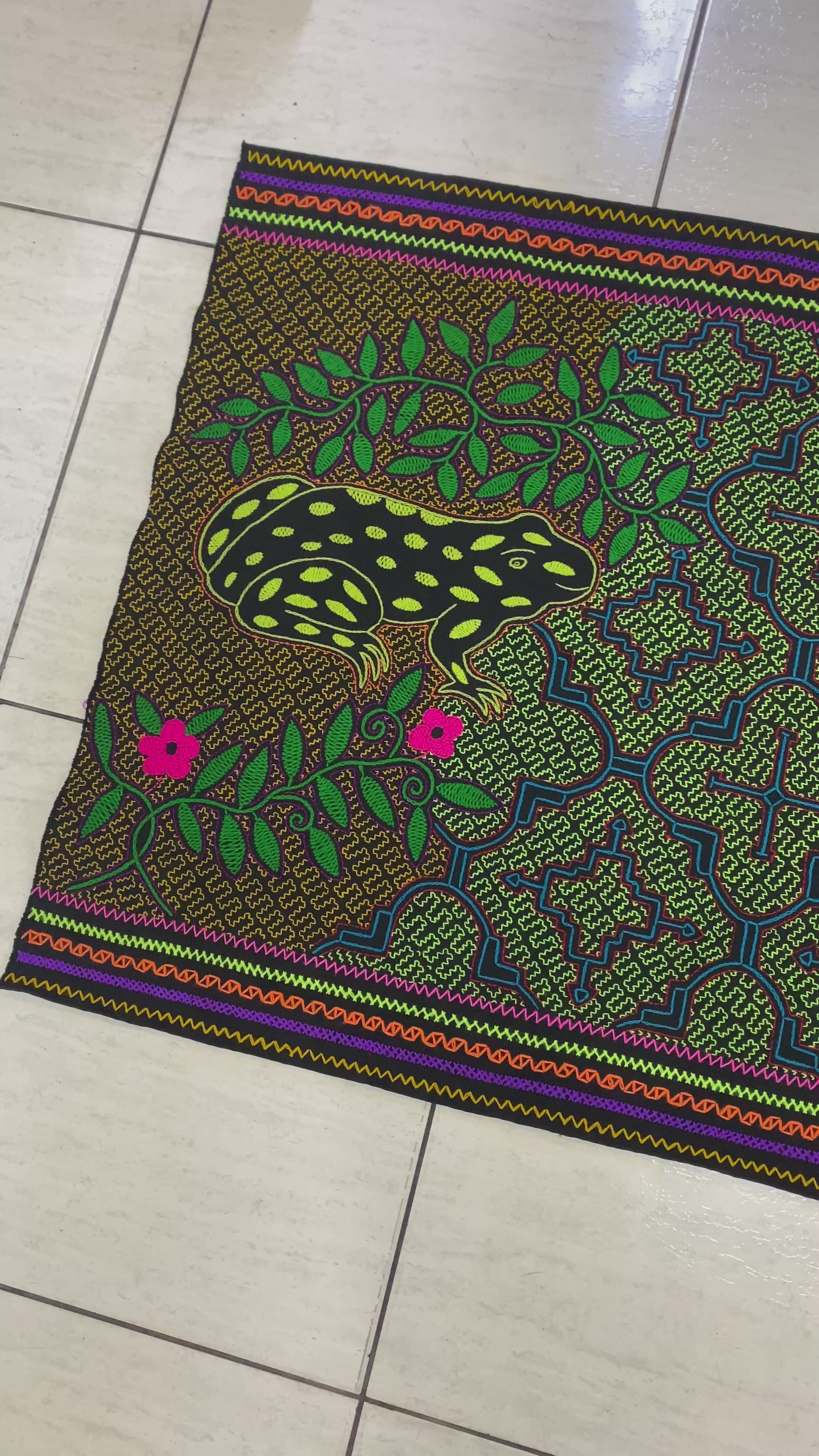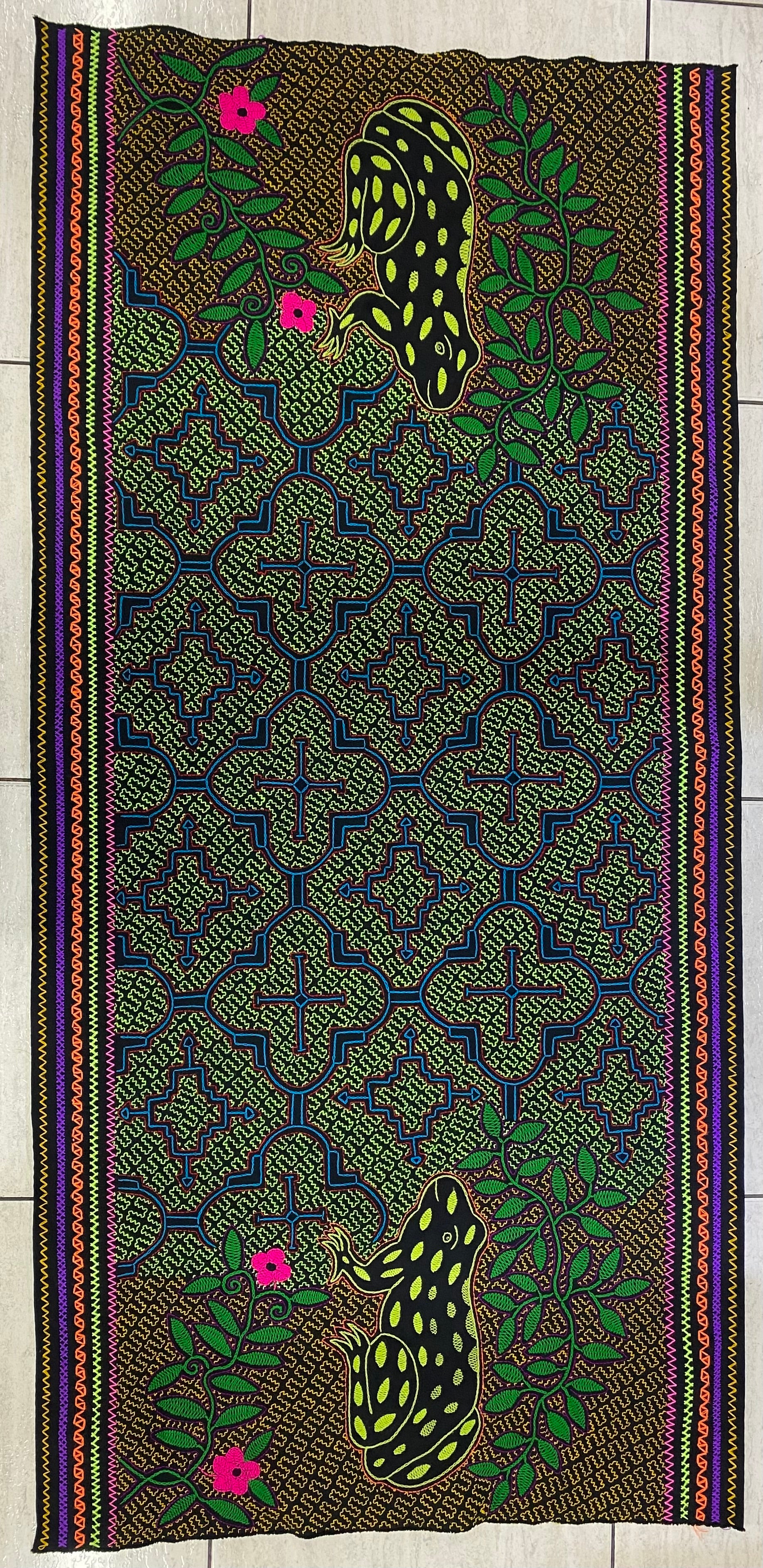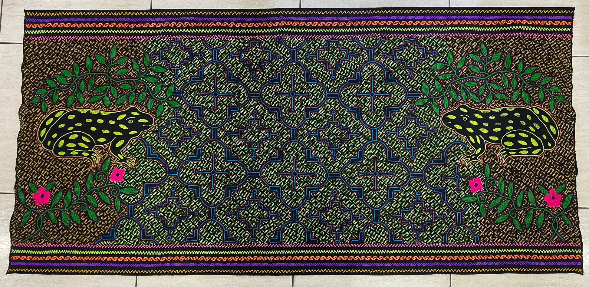 Shipibo Conibo Toad Tabletop Tapestry Hand Embroidered Peruvian Tablecloth Textile Ceremonial Amazonian Shamanic Altar 58.26” x 28.35”