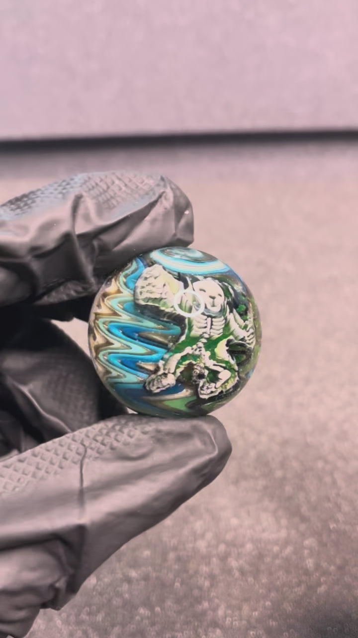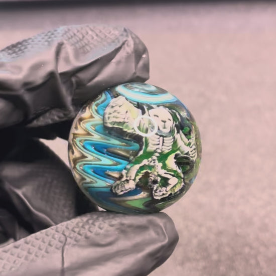 Stephen Boehme UV Grateful Dead Skeleton Bear Marble 1.2" #13C